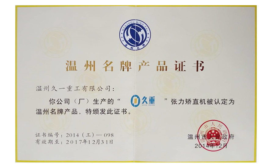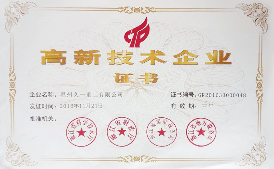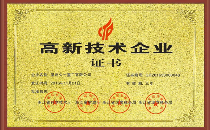 公司先后通過了ISO9001質(zhì)量管理體系認(rèn)證、ISO14001環(huán)境管理體系認(rèn)證與OHSAS1801職業(yè)健康管理體系認(rèn)證。在發(fā)展過程中公司被認(rèn)定為“國家高新技術(shù)企業(yè)”、“專精特新企業(yè) ”、浙江省科技型中小企業(yè)、溫州市科技創(chuàng)新型企業(yè)、溫州市企業(yè)技術(shù)研究開發(fā)中心。并且公司產(chǎn)品獲得了“溫州名牌產(chǎn)品”的殊榮。