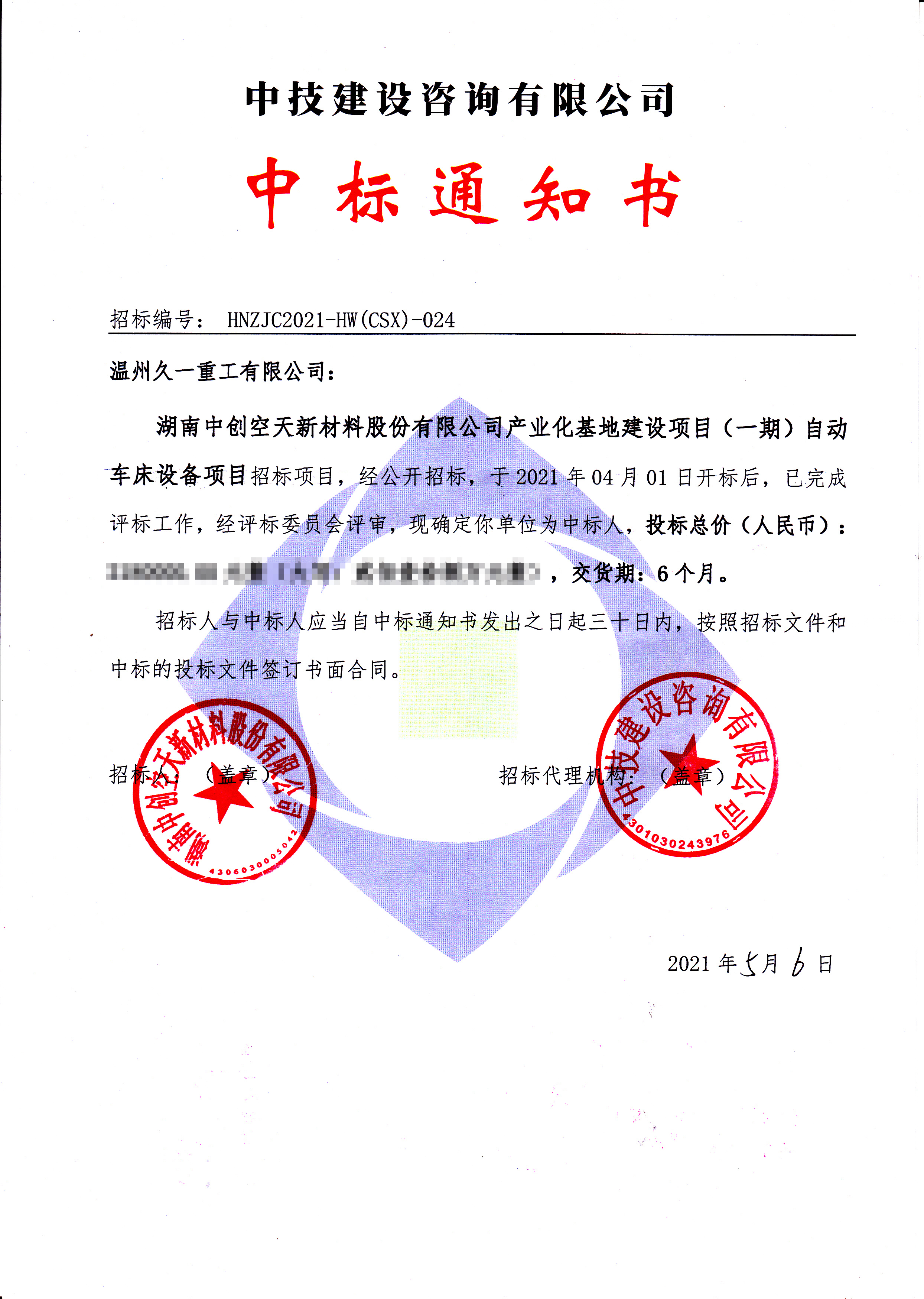 2021年5月6日,久一重工成功中標湖南中創(chuàng)空天新材料股份有限公司產業(yè)化基地建設項目(一期)自動車床設備項目。該設備相較傳統車床,一次性加工量更大,圓錠轉速慢,降低離心作用產生的安全風險,有效減少設備震動,加工后表面精度高,切屑較短,清理方便,可實現高品質高效加工。