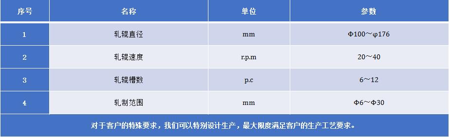 用于黑色金屬或有色金屬盤料端頭軋制。軋制品用于拉拔機(jī)穿模使用。